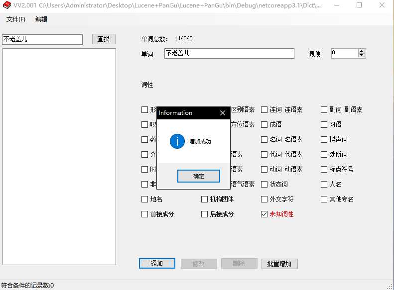 具有较高电脑经验用户,可使用盘古分词字典编辑器加载归海的分词字典文件新增自定义词语。