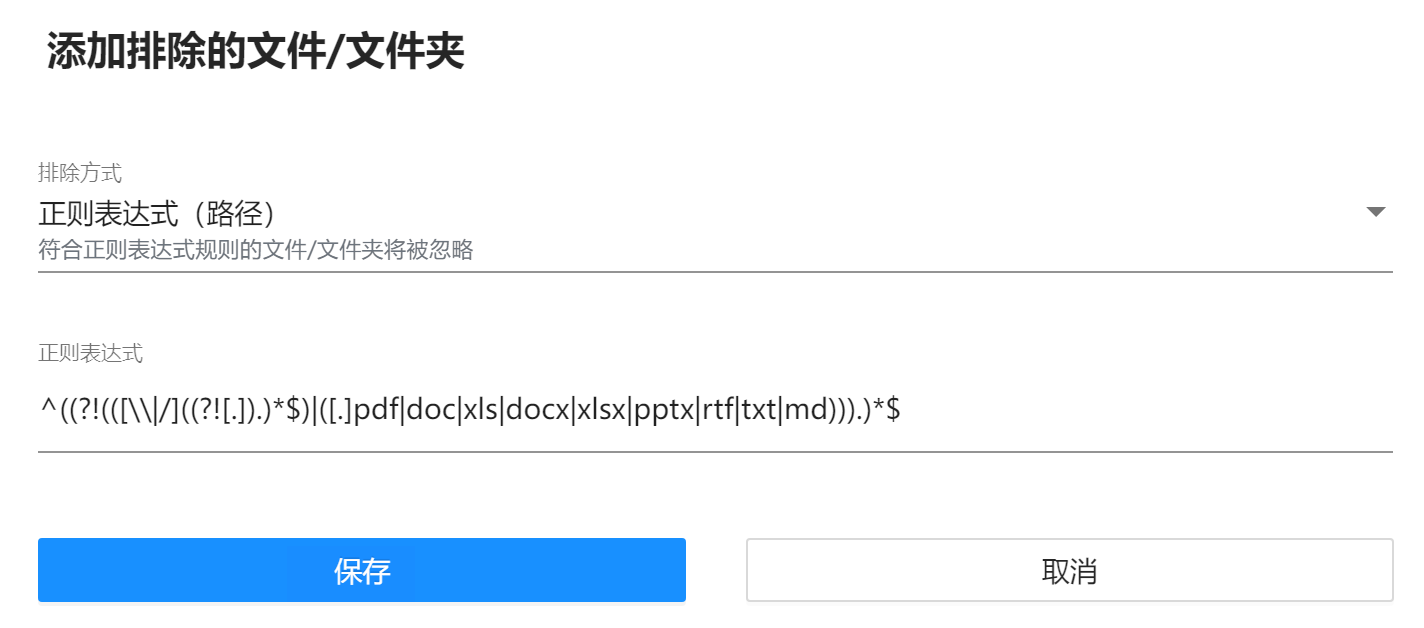 以上规则可以全局限定只索引 pdf、doc、xls、docx、xlsx、pptx、rtf、txt、md 类型的文件。