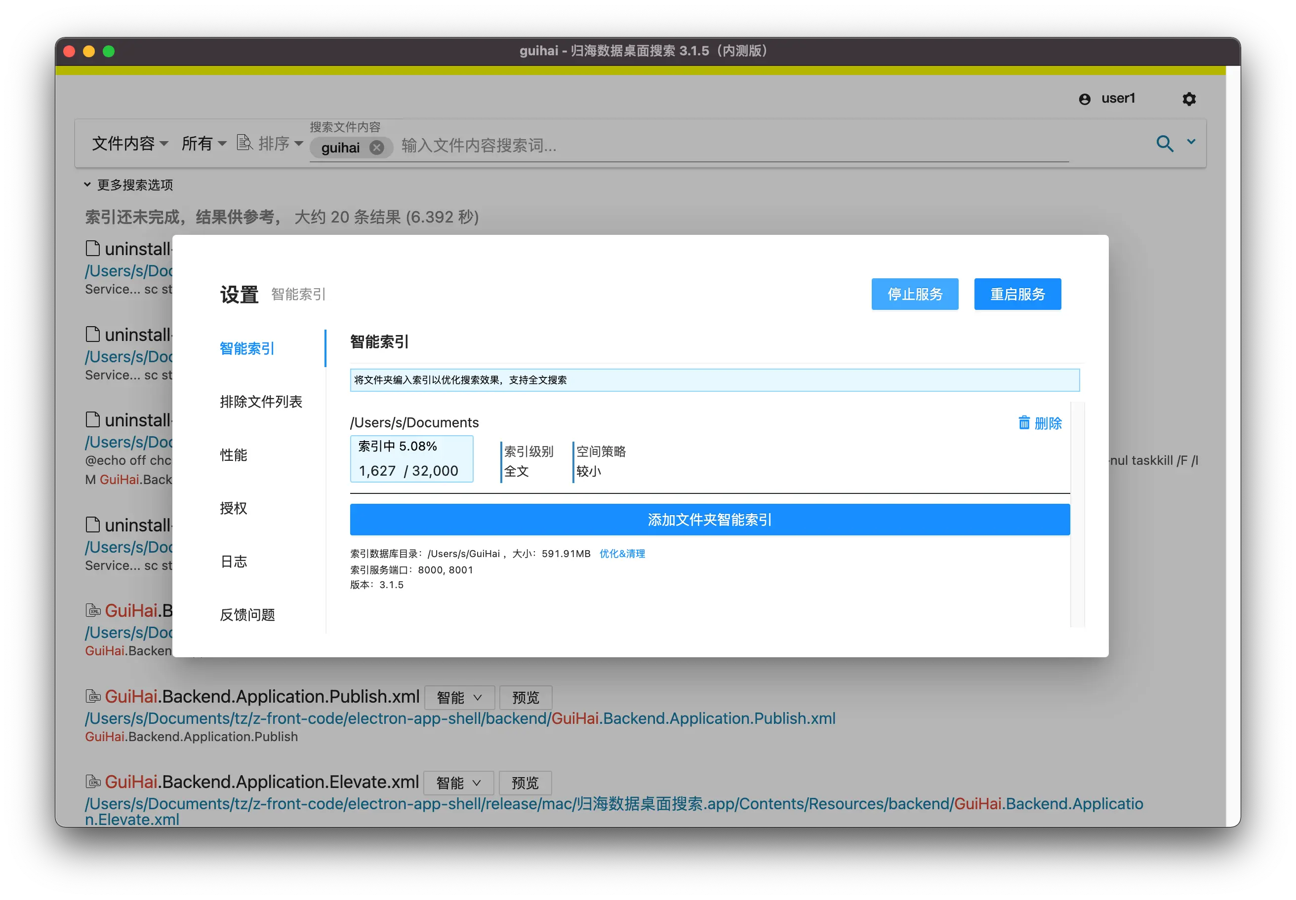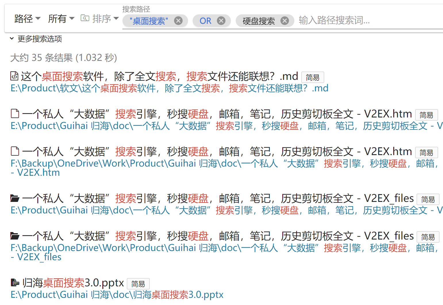 • ☑ 文件变更处理优化:在索引完成的情况下,文件的变更会几乎实时的更新(部分文件无法比如 Office 文档往往更新时仍旧被打开,此时文件被占用无法立即更新,也会在之后更新)